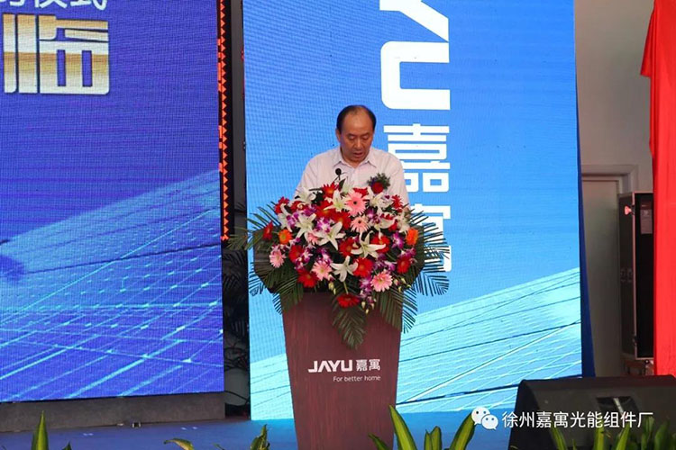 6月29日,徐州嘉寓光能開(kāi)幕投產(chǎn)暨戰(zhàn)略簽約儀式隆重舉行。中國(guó)光伏行業(yè)協(xié)會(huì)秘書(shū)長(zhǎng)王勃華、沛縣常務(wù)副縣長(zhǎng)吳以貴、國(guó)家發(fā)改委能源研究所王斯成教授、國(guó)家光電建筑應(yīng)用委員會(huì)主任梁岳峰、沛縣縣委常委/開(kāi)發(fā)區(qū)黨工委書(shū)記于帆、嘉寓集團(tuán)董事長(zhǎng)田家玉、嘉寓股份副董事長(zhǎng)/執(zhí)行總裁陳其澤、嘉寓股份董事張初虎等領(lǐng)導(dǎo)及嘉賓出席投產(chǎn)儀式。