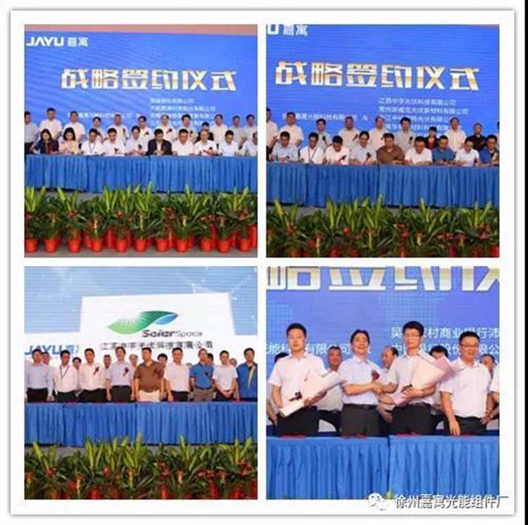與茂迪股份有限公司、太極能源科技股份有限公司、無(wú)錫奧特維智能裝備有限公司、TUV北德集團(tuán)、江蘇順風(fēng)光電科技有限公司、華美新材料科技有限公司、江蘇中宇光伏科技有限公司、常州斯維克光伏新材料有限公司、浙江中環(huán)賽特光伏有限公司 、江蘇鼎飛鋁業(yè)科技有限公司、江蘇銀行股份有限公司沛縣支行、吳江農(nóng)村商業(yè)銀行沛縣支行、中國(guó)銀行股份股份有限公司沛縣支行十三家企業(yè)簽署了戰(zhàn)略合作協(xié)議。